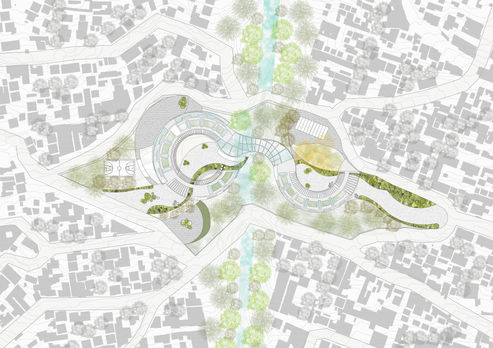El proyecto consta de una sola estructura ondular, que busca adaptarse al perfil de la montaña, la inclinación ofrece la oportunidad para generar un juego de niveles donde el proyecto puede recorrerse tanto en su interior como en el exterior. Los espacios abiertos, las alturas generosas y los tragaluces presentan un contraste que permiten que la luz solar inunde las salas que junto con su geometría crean ambientes atractivos y abiertos, además del aprovechamiento de las excelentes vistas y lo mas importante la relación directa con la quebrada de San Cristobal.